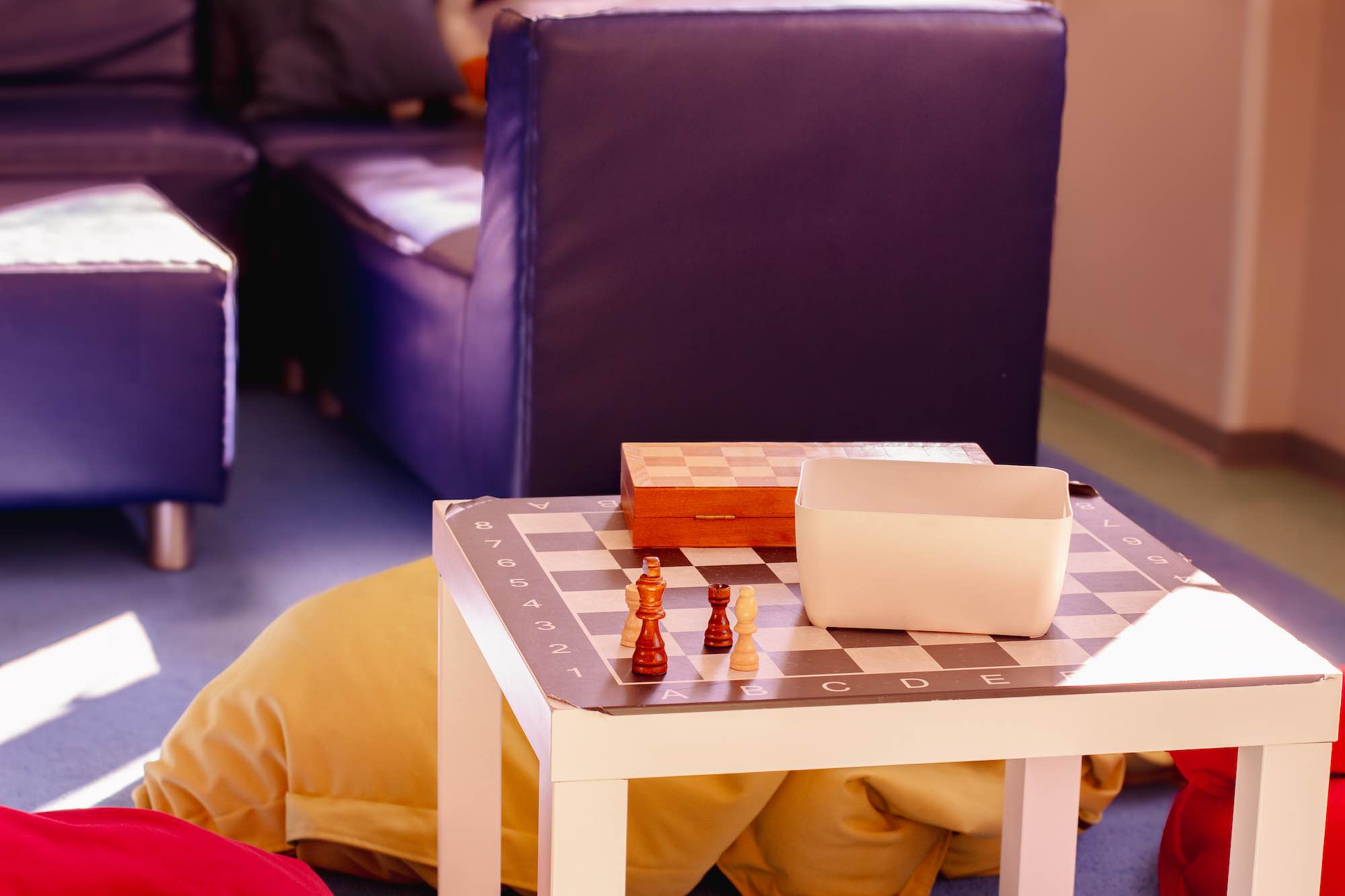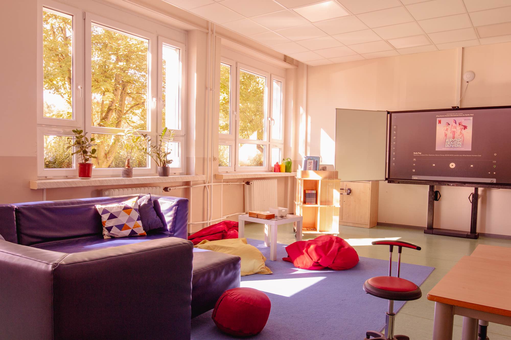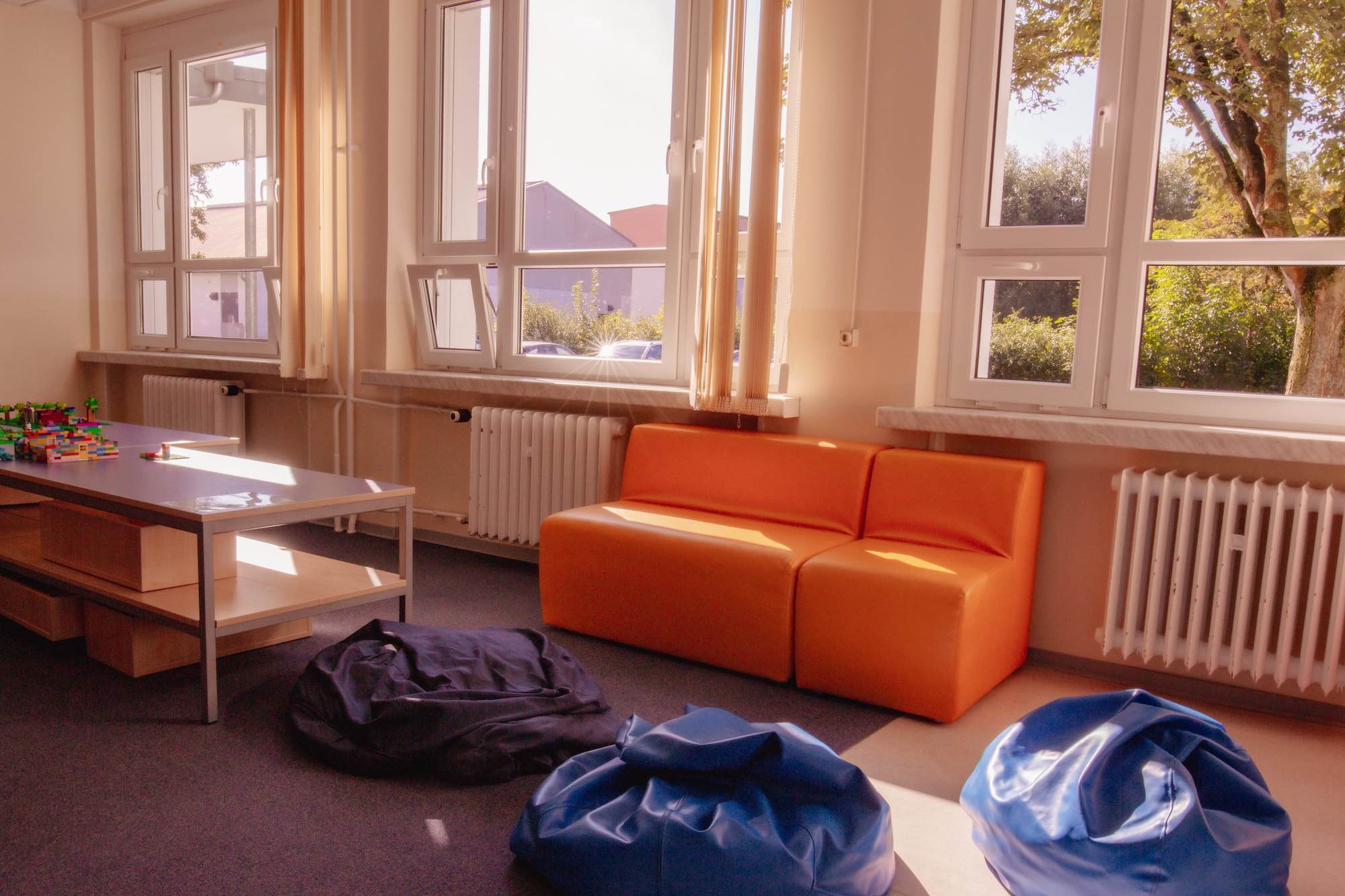 Die Kinder haben in insgesamt vier Räumen die Möglichkeit ihren Nachmittag zu gestalten. Dazu gehören ein Kreativraum, ein Spieleraum mit Bibliothek und ein Chill-Out-Bauraum. Weiterhin lädt der großzügige Flurbereich zum Verweilen ein. Ebenso können kulinarische Köstlichkeiten in der Kinderküche zu bereitet werden.