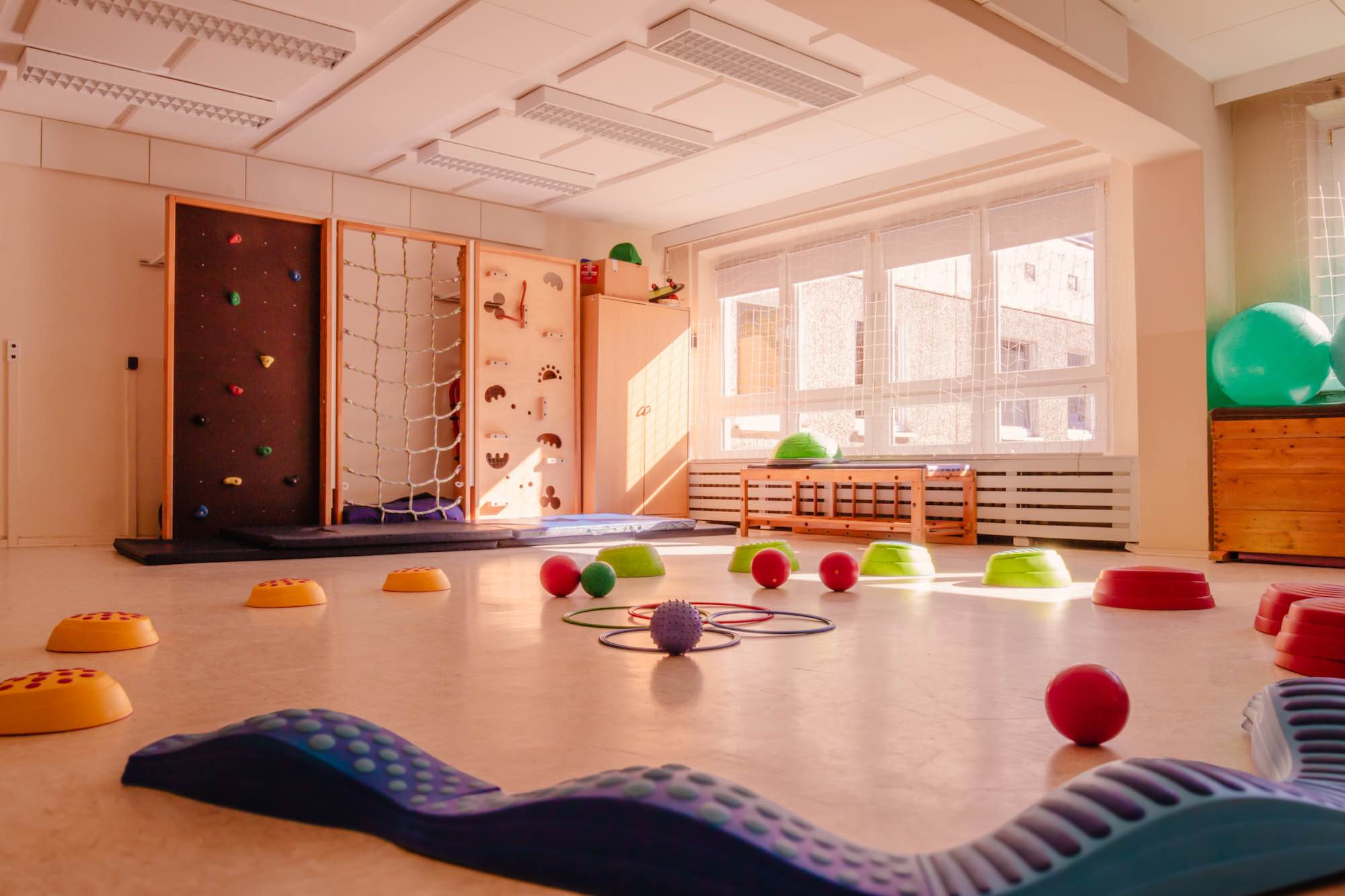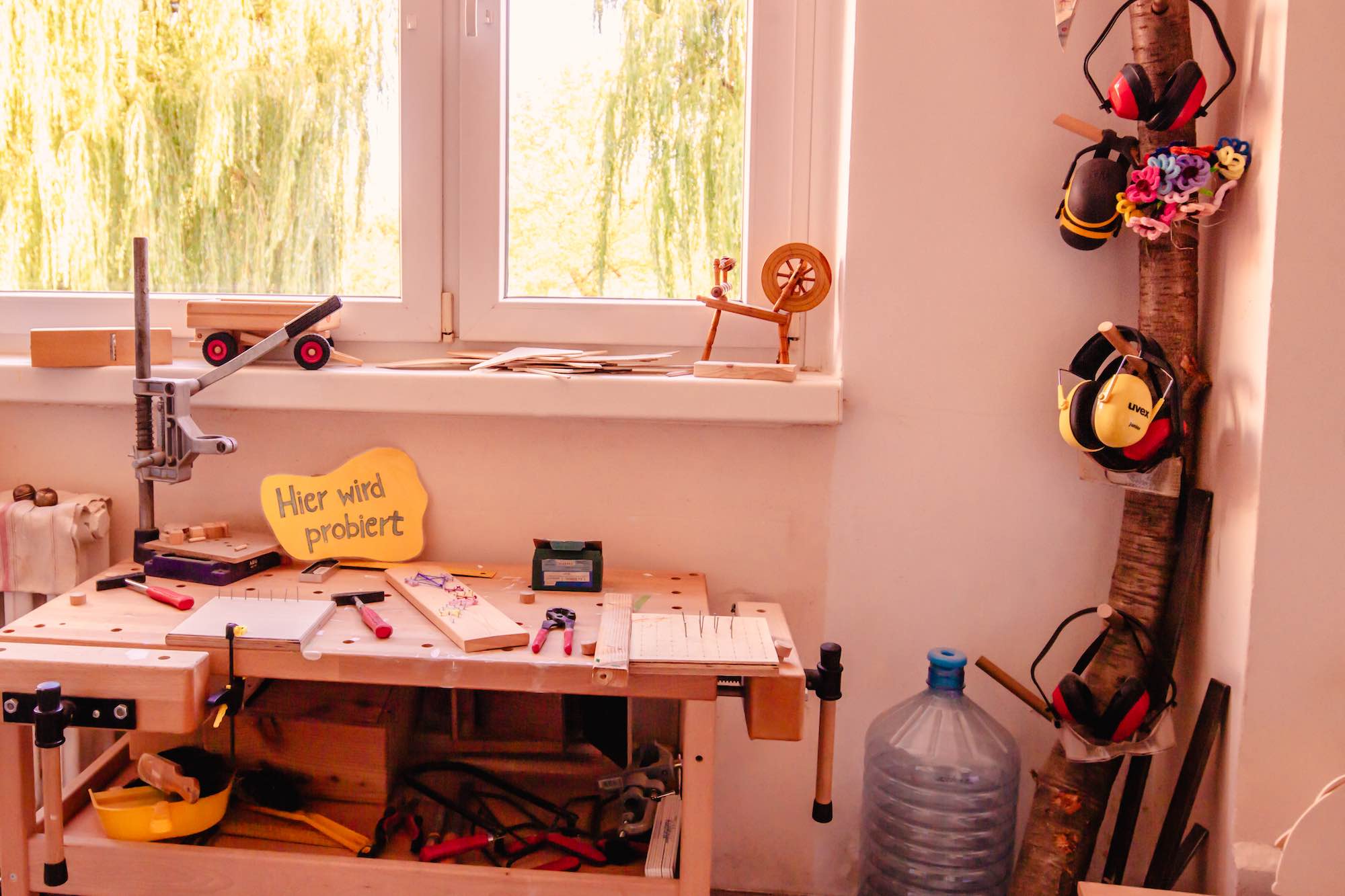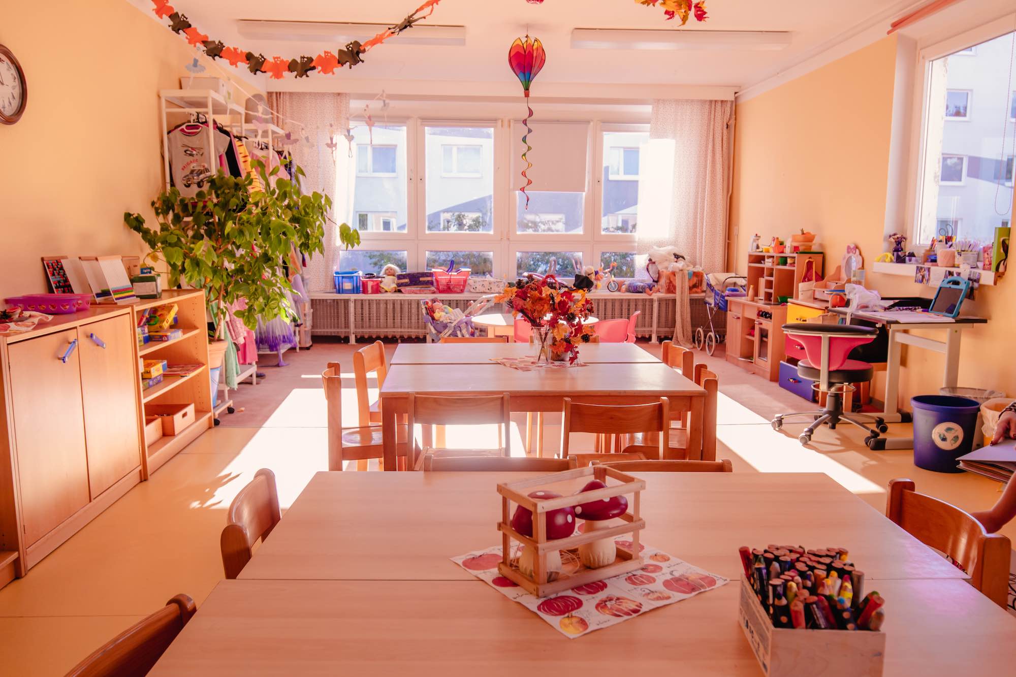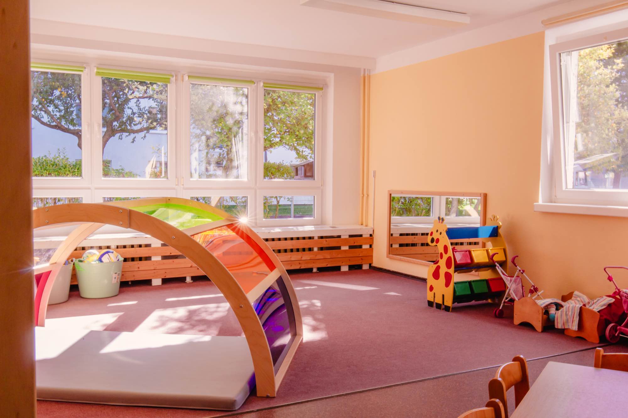 In unserem Haus gibt es 14 Gruppenräume, 6 große Nebenräume zum Ruhen, Spielen und sich Bewegen. Weiterhin haben wir eine Kinderwerkstatt, in der Sebastian mit den Kindern schraubt, hämmert, baut und kreative Dinge entstehen. Im Snozzelraum können die Kinder entspannen und auf Entdeckungsreise mit allen Sinnen gehen. Ein großer Bewegungsraum in der oberen Etage lädt ein, sich herauszufordern. Im Bewegungsraum für die Kleinsten lieben alle Kinder vorrangig das Bälle-Bad.