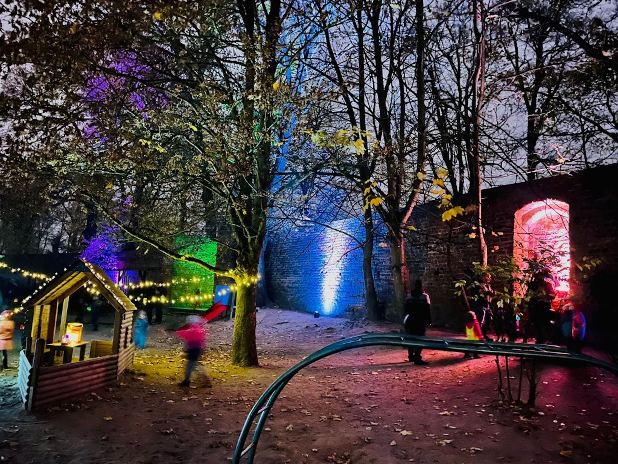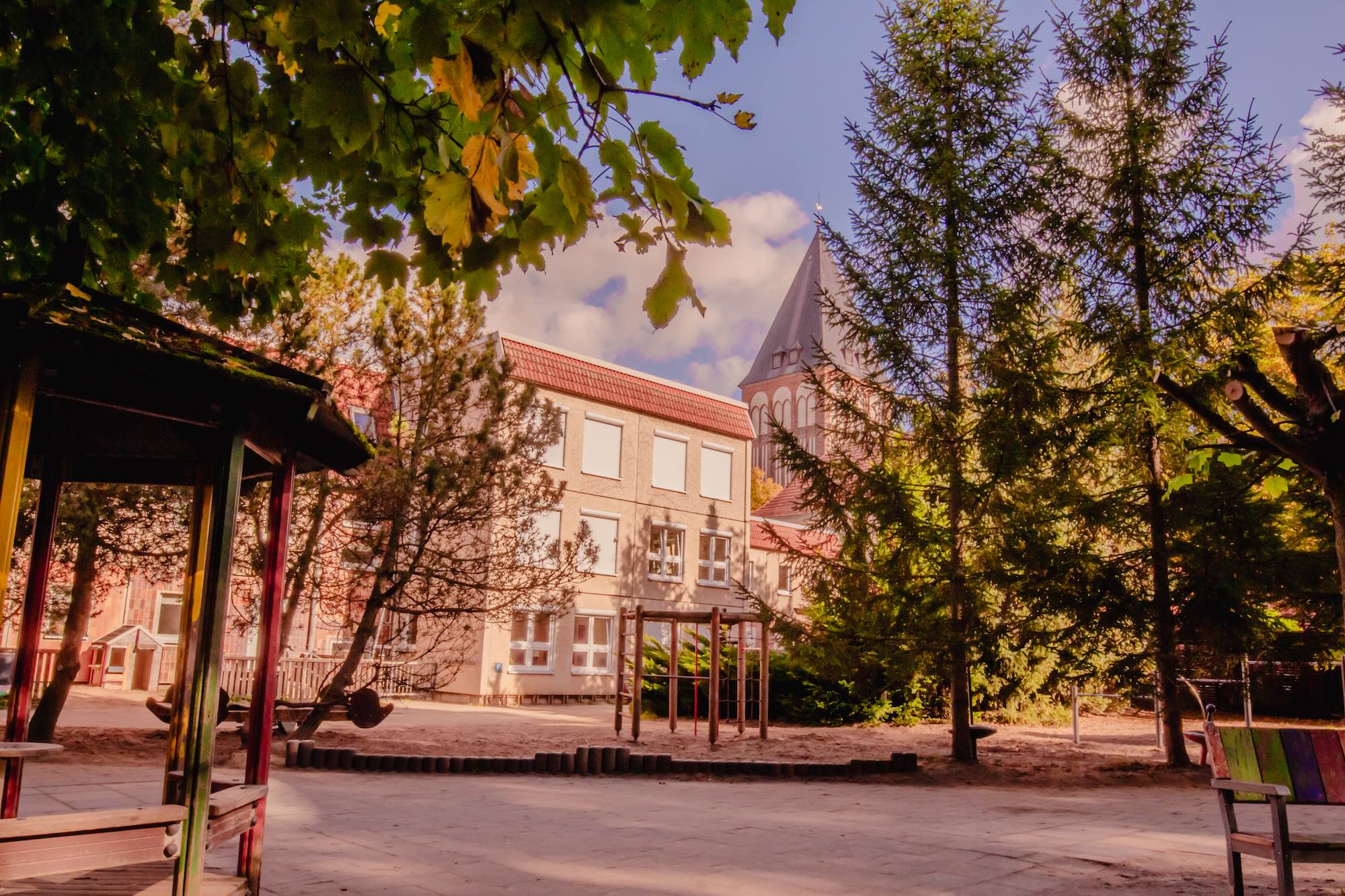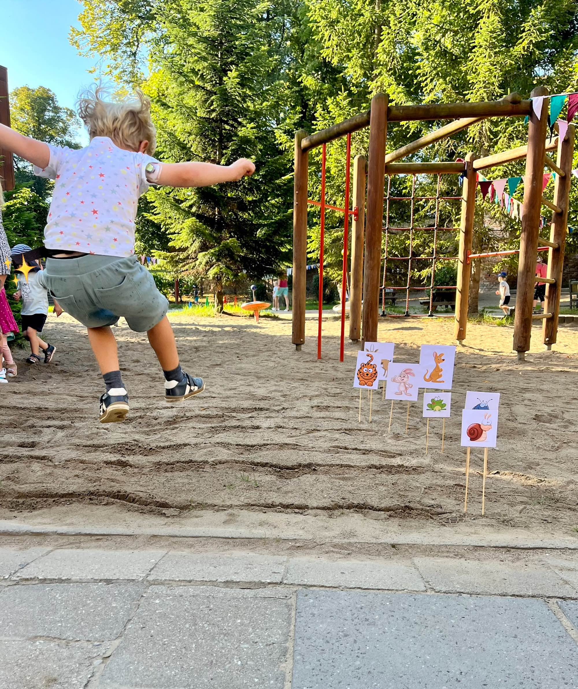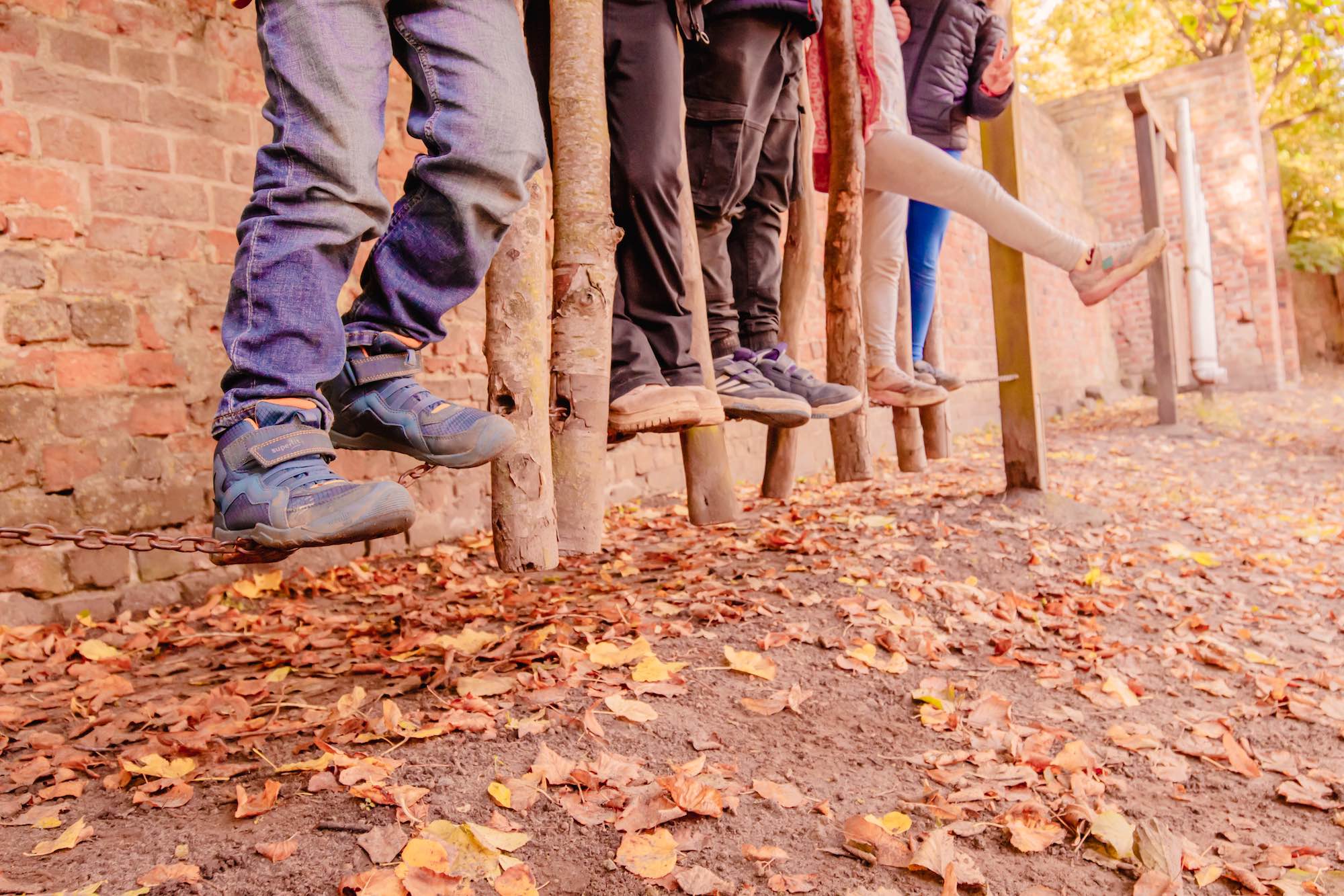 Unser Hof wird teilweise durch die historische Stadtmauer begrenzt. Die mit zahlreichen Bäumen und Sträuchern bewachsene Fläche ist 2300 m2 groß und bietet den Kindern reichlich Raum zum Bewegen, zum Beobachten und zur kreativen Entfaltung. Neben einem großen Sandspielplatz lassen sich auch verschiedenste Ideen auf den Kletter- und Spielelementen umsetzen.