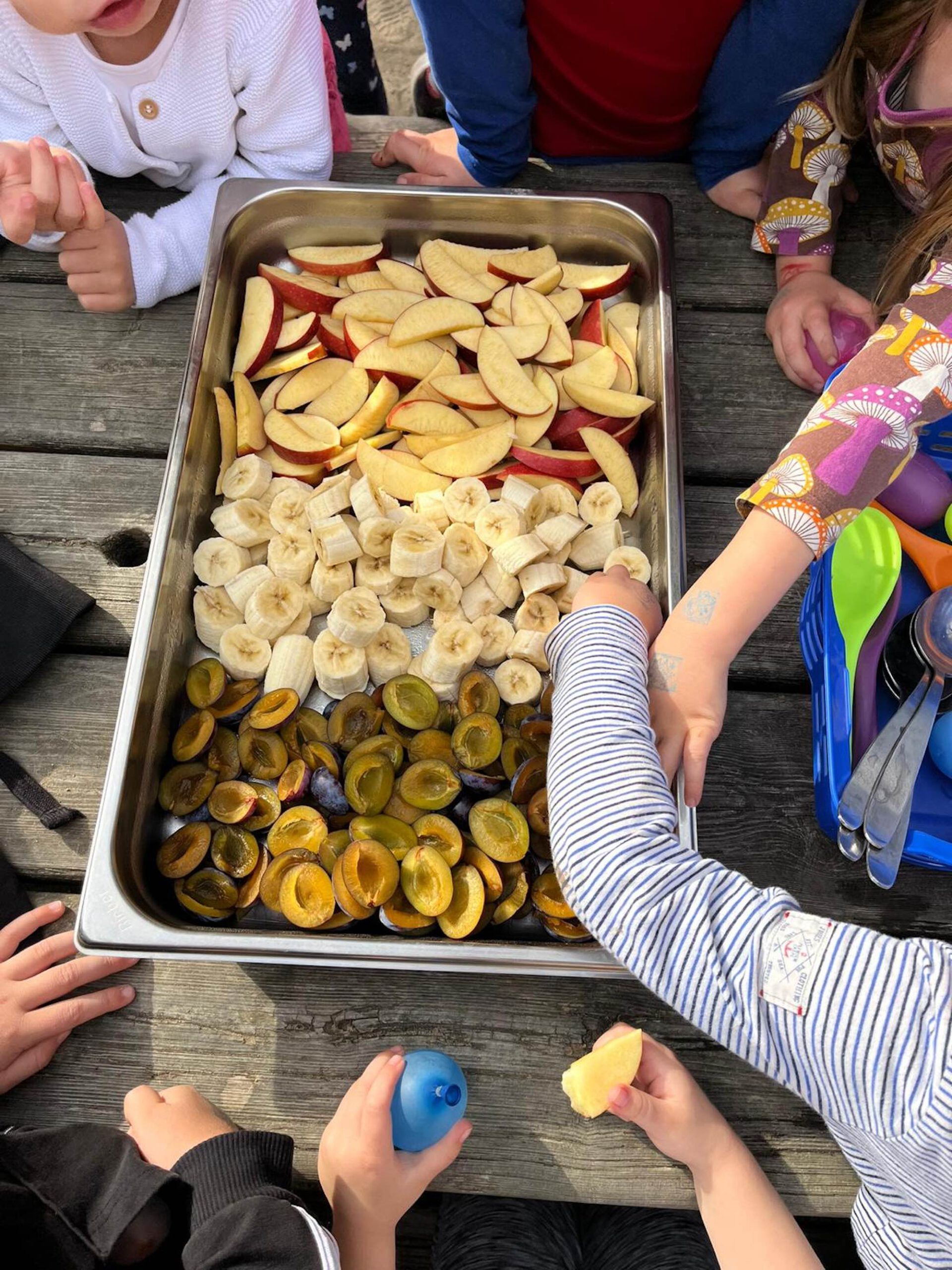 Seit 01.01.2019 werden die Kinder von unserem Hauskoch verpflegt, der mit frischen regionalen und gesunden Produkten bei den Kleinen punktet. Unsere Gerichte werden verfeinert aus der mit den Kindern selbst angelegten Kräuterspirale. Es wird eine ganztägige Verpflegung sichergestellt. Hierzu zählen das Frühstück, Mittagessen und Vesper.